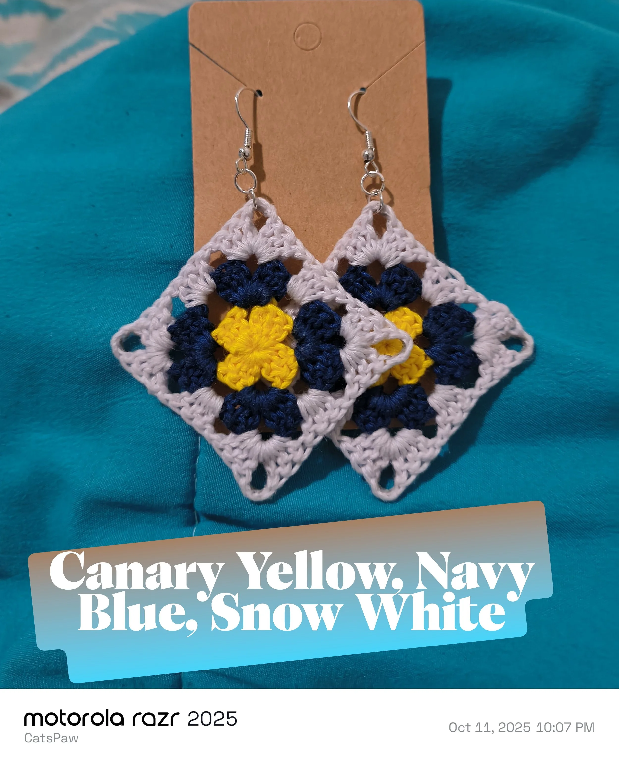 Step into a world of vintage charm and vibrant flair with our Granny Square Crochet Earrings, handmade with love and a touch of magic. Each pair features a miniature granny square set on fishhook-style earrings.